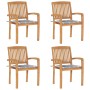 Sillas de jardín apilables 8 uds madera de teca con cojines