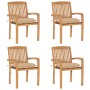 Sillas de jardín apilables 4 uds madera de teca con cojines