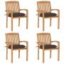 Sillas de jardín apilables 6 uds madera de teca con cojines