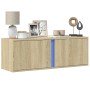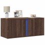 Este mueble de TV de pared es la solución perfecta para la casa, con el fin de maximizar el espacio y mantener el suelo despejado.Material estable y duradero: La madera de ingeniería es un material duradero y estable con una superficie lisa que es resistente a la humedad, la deformación y la rotura, lo que la convierte en una opción fiable para una variedad de proyectos.Luces LED RGB para un ambiente agradable: Este armario de TV cuenta con luces LED que se pueden ajustar fácilmente para crear un espectáculo de luces personalizado. Puedes personalizar los modos, los colores y el brillo para mejorar el ambiente de tu hogar.Espacio óptimo: Este soporte de TV tiene 2 compartimentos con puertas, que ofrecen un amplio espacio para guardar tus objetos de uso diario, como libros, DVD, revistas, material multimedia y otros artículos, bien organizados y al alcance de la mano.Ahorro de espacio: El diseño de pared aprovecha al máximo el espacio no utilizado de la pared, convirtiéndolo en una zona de almacenamiento compacta y eficiente.Diseño DIY: El mueble de TV flotante ofrece infinitas opciones de diseño, lo que te permite utilizarlo solo o combinarlo con otros muebles altos de TV para crear un centro de entretenimiento completo.Información útil:Los tornillos y los tacos para el interior de la pared no están incluidos. Te recomendamos buscar y utilizar tornillos y tacos adecuados específicamente para tus paredes. Si no estás seguro, puedes consultar con un profesional. Lee y sigue cada paso de las instrucciones.El producto tiene un conector USB que necesita una fuente de alimentación USB certificada de 5 V (no incluida).