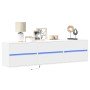 Este mueble de TV de pared es la solución perfecta para la casa, con el fin de maximizar el espacio y mantener el suelo despejado.Material estable y duradero: La madera de ingeniería es un material duradero y estable con una superficie lisa que es resistente a la humedad, la deformación y la rotura, lo que la convierte en una opción fiable para una variedad de proyectos.Luces LED RGB para un ambiente agradable: Este armario de TV cuenta con luces LED que se pueden ajustar fácilmente para crear un espectáculo de luces personalizado. Puedes personalizar los modos, los colores y el brillo para mejorar el ambiente de tu hogar.Amplio espacio de almacenamiento: Este soporte de TV tiene 4 cajones, lo que proporciona un amplio espacio para guardar sus elementos esenciales diarios, como libros, DVD, revistas, suministros multimedia y otros artículos, perfectamente organizados y al alcance de la mano.Ahorro de espacio: El diseño de pared aprovecha al máximo el espacio no utilizado de la pared, convirtiéndolo en una zona de almacenamiento compacta y eficiente.Diseño DIY: El mueble de TV flotante ofrece infinitas opciones de diseño, lo que te permite utilizarlo solo o combinarlo con otros muebles altos de TV para crear un centro de entretenimiento completo.Información útil:Los tornillos y los tacos para el interior de la pared no están incluidos. Te recomendamos buscar y utilizar tornillos y tacos adecuados específicamente para tus paredes. Si no estás seguro, puedes consultar con un profesional. Lee y sigue cada paso de las instrucciones.El producto tiene un conector USB que necesita una fuente de alimentación USB certificada de 5 V (no incluida).