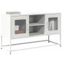 Este mueble de TV con amplio espacio de almacenamiento es un complemento práctico y llamativo para tu salón o dormitorio. Material robusto y estable: El acero laminado en frío es un tipo de acero con bajo contenido de carbono que se produce mediante el proceso de "laminado en frío" y se procesa a temperaturas ambiente casi normales. El acero laminado en frío tiene una superficie más lisa, mayor resistencia y mayor precisión.Amplio espacio de almacenamiento: este soporte de TV ofrece un amplio espacio de almacenamiento para mantener sus revistas, libros, DVD y dispositivos multimedia bien organizados y al alcance.Dos opciones de montaje: Los paneles laterales del mueble TV se pueden colocar en el lado izquierdo o derecho según tus necesidades.Puertas prácticas: Las dos puertas ayudan a mantener un espacio limpio y organizado ocultando pequeños objetos esenciales y desorden detrás de ellos.Tiradores metálicos: Este armario multimedia está equipado con tiradores metálicos para facilitar el acceso y añadir un elegante estilo industrial a su diseño. Advertencia:Para evitar que vuelque, este producto debe usarse con el dispositivo de fijación a la pared suministrado.