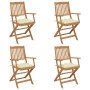 Este moderno juego de sillas de comedor de madera dará un toque de estilo natural a tu jardín, terraza o patio. Este juego de sillas plegables será una gran opción para cenar al aire libre. Estas sillas de comedor están hechas de madera de acacia de primera calidad, una madera dura tropical, que es resistente a la intemperie y duradera para años de uso. La superficie con acabado de aceite es fácil de limpiar con un paño húmedo. Las sillas se pueden plegar para ahorrar espacio cuando no están en uso. Además, los cojines incluidos brindan mayor comodidad. Cada cojín tiene 2 juegos de cuerdas para fijarlo firmemente a la silla. Nota: Para prolongar la vida útil de los muebles de exterior, te recomendamos que los limpies con regularidad y no los dejes al aire libre sin protección innecesariamente.Limpieza: Usar una solución de jabón suaveAlmacenamiento: Si es posible, guarda el producto en un lugar fresco y seco en el interior. Si el producto se almacena al aire libre, protégelo con una funda impermeable. Limpia y seca el exceso de agua o nieve de las superficies planas después de una lluvia o nevada. Permite la ventilación para evitar daños relacionados con la humedad.