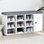 ¡Ten los zapatos ordenados y siempre a mano con este banco zapatero! Material robusto: La madera de ingeniería tiene una calidad excepcional, con una superficie lisa y también cuenta con fuerza, estabilidad y resistencia a la humedad.Amplio espacio de almacenaje: El banco de pasillo cuenta con un amplio espacio para guardar el calzado y ayuda a que la casa esté limpia y odenada..Asiento confortable: El mullido cojín de asiento proporciona una comodidad óptima mientras te pones y te quitas los zapatos.Uso versátil: El banco es perfecto para usarse como banco zapatero en el pasillo, o como banco de almacenaje en el salón.