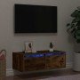 Mueble de TV con luces LED gris hormigón 100X35,5x25 cm