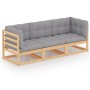 Sofá de jardín 3 plazas con cojines madera maciza de pino